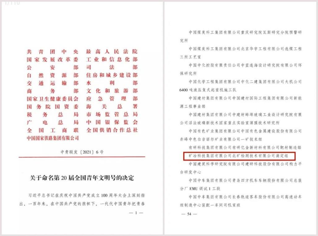 近日,第20届全国青年文明号集体评选结果揭晓,集团北矿检测技术有限公司滴定组获得全国青年文明号认定。