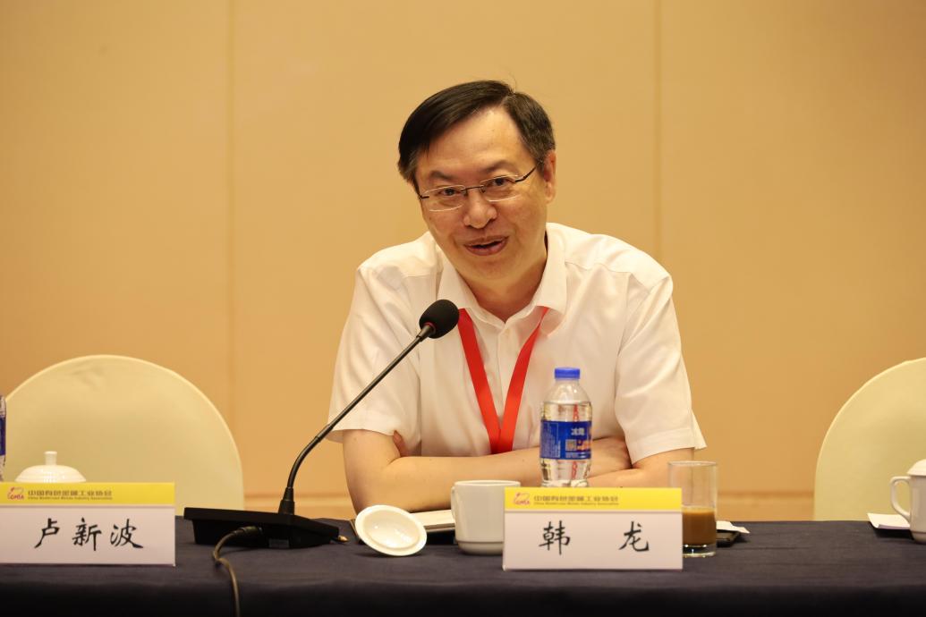 韩龙在交流发言中介绍了矿冶科技集团一年来在生产经营、科技创新、改革发展、人才建设、产业布局以及党建工作等方面取得的业绩以及面临的挑战和机遇。他指出,矿冶科技集团作为科技型公益类央企,是国家创新发展战略的主力军,肩负着行业技术开发国家队的使命和任务,在“十四五”时期,将围绕矿产资源开发利用技术、先进功能材料、矿产资源循环利用及环保三大主业,着力将自身打造成为行业原创技术的策源地、共性关键技术的标杆地、成果转化的示范地、科技体制改革的先行地、科技人才的聚集地,为有色行业高质量发展赋能、赋值、赋智,推动行业技术进步和升级换代。